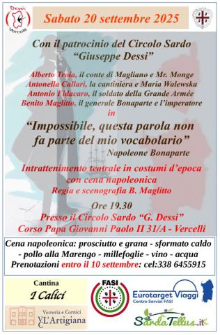 Il giorno 27 settembre 2025, alle ore 15.30, presso il salone del CIRCOLO CULTURALE SARDO DESSI’ sito in Via Giovanni Paolo II 31/A Vercelli si terrà la riunione dei soci per deliberare sui seguenti punti dell’ordine del giorno: