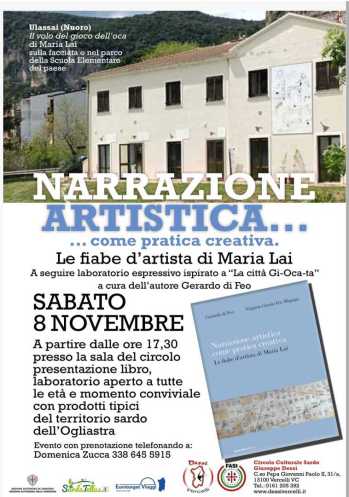 8 novembre Laboratorio delle favole di Maria Lai con apericena con degustazione dei prodotti sardi della zona d’origine di Maria Lai